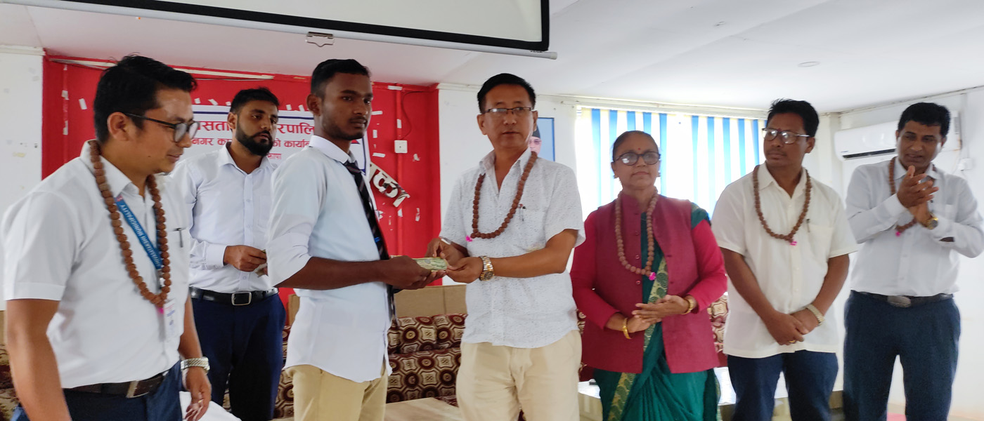 उनीहरुलाई नगरपालिकाको कार्यालयमा एक कार्यक्रमका बीच नगरप्रमुख मेगाहाङ्ग थोप्रा, उपप्रमुख नरमाया कार्की लगायतले छात्रवृत्ति प्रदान गरेका थिए ।