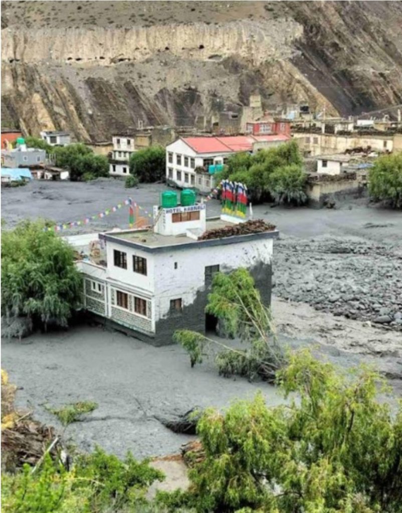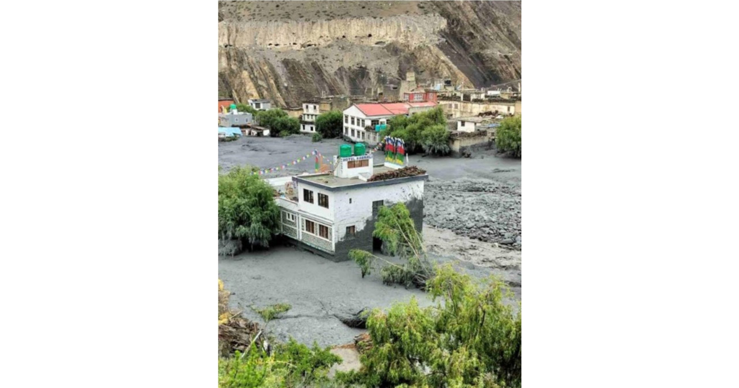 त्यसैगरी बाढीले कागबेनीस्थित धर्मशाला पुरेको छ । मनसुनमा पनि पानी नपर्ने छायाँवृष्टि भएको मुस्ताङमा दुई दिनदेखि लगातार झरी परेपछि मुक्तिनाथदेखि केही तल झोङको पहिरो कागखोलामा मिसिएपछि बाढी आएको हो ।‘आइतबार साँझदेखि स्थानीय ठाडो कागखोलामा आएको बाढीले कागबेनी बस्तीमा बाढीले वितण्डै मच्चाएको छ ।
