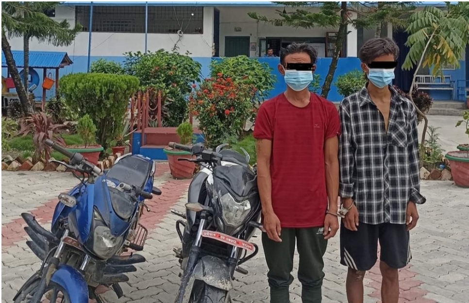 पार्किङ गरी राखिएको दुईवटा मोटरसाइकल एकैसाथ चोरी भएपछि पीडित धनीले इलाका प्रहरी कार्यालय दमकमा उजुरी दिएका थिए ।चोरी भएको माेटरसाइकलहरूकाे खाेजतलास गर्ने क्रममा विशेष सूचनाको आधारमा उनीहरूलाई माेटरसाइकलसहित पक्राउ गरेको जनाइएको छ । पक्राउ परेका दुवै जनामाथि थप अनुसंधान भइरहेको छ ।