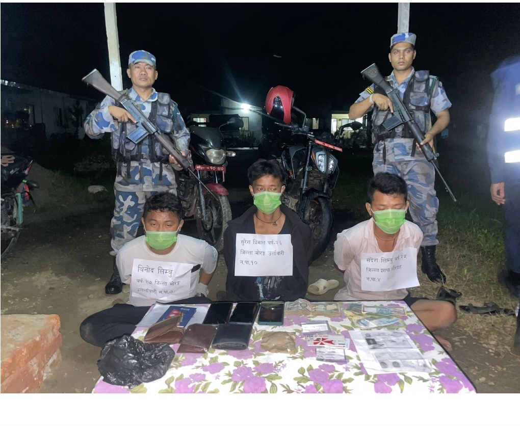 पक्राउ पर्नेमा मोरङ उर्लाबारी-७ का २७ वर्षीय बिनोद लिम्बू,सोही नगरपालिका-१० का २६ वर्षीय सुरेश धिमाल र झापा गौरादह-४ का २५ वर्षिय सन्देश लिम्बू रहेको सशस्त्र प्रहरीले जनाएको छ।