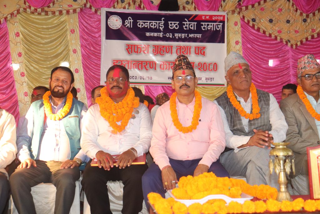 समाजका अध्यक्ष राजकिशोर चौधरीको सभापतित्व एवं कनकाई नगरपालिकाका प्रमुख राजेन्द्रकुमार पोखरेलको प्रमुख आतिथ्य रहेको सपथ ग्रहण तथा पद हस्तान्तरण कार्यक्रममा सहभागीहरुले छठ समाजको सफल नेतृत्वका कारण पछिल्लो समय छठ पर्व सबै जातजातीहरुको साझा पर्वका रुपमा विकास हुँदै आएको बताए ।