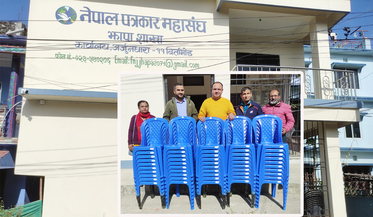 बिर्तामोड उद्योग वाणिज्य संघका वरिष्ठ उपाध्यक्ष राजु न्यौपानेले नेपाल पत्रकार महासंघ झापा शाखालाई ५० थान कुर्सी प्रदान गरेका छन् ।