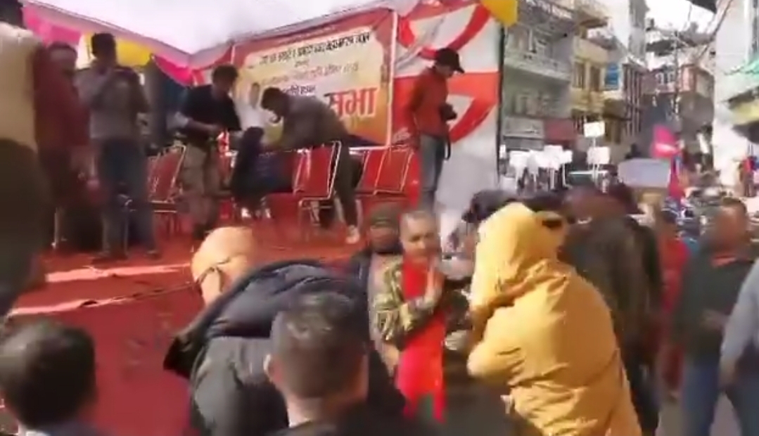 बागलुङमा व्यवसायी दुर्गा प्रसाईंमाथि हातपात भएको छ । बागलुङमा सभालाई सम्बोधन गर्न पुगेका उनलाई लोकतान्त्रिक चोकमा हातपात भएको हो ।