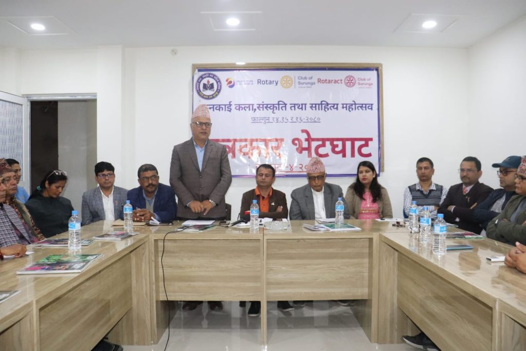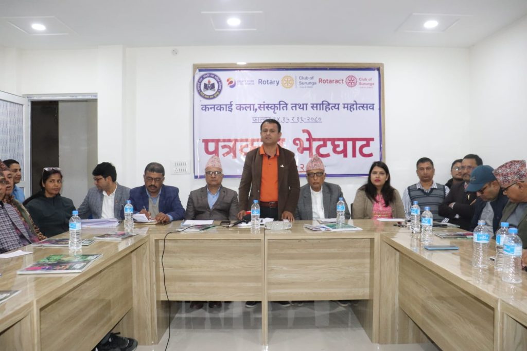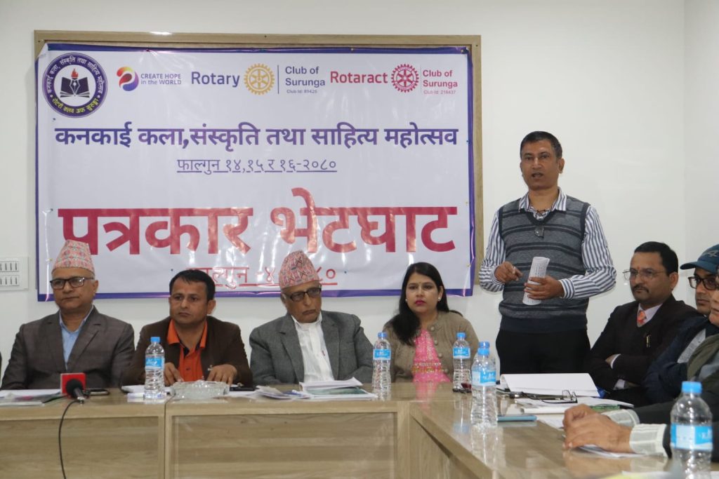 रोटरी क्लब अफ सुरुङ्गाको आयोजनामा हुन लागेको कला साहित्य महोत्सवका माध्यमबाट कनकाई नगर क्षेत्रको साहित्य, संस्कृति र कलाको प्रवद्र्धन गर्ने उद्येश्य रहेको क्लवका अध्यक्ष शिवकुमार कडेलले जानकारी दिए । कार्यक्रमको तयारीका बारेमा जानकारी दिने उद्येश्यले सुरुङ्गामा पत्रकार सम्मेलन गरिएको क्लबका अध्यक्ष कँडेलले बताए ।