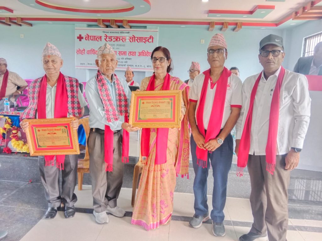 त्यसै गरी, रेडक्रसकर्मीहरू तोयानाथ अधिकारी र दुर्गाप्रसाद चापागाईंलाई संस्थालाई पुर्याएको देनको लागि प्रशंसापत्रद्वारा सम्मान गरिएको थियोे । सदस्य श्याम पौडेलले स्वागत मन्तव्य राखेको कार्यक्रममा अध्यक्ष प्रसाईंले वार्षिक प्रतिवेदन, सचिव अर्जुन बोहराले सङ्गठनात्मक प्रतिवेदन र कोषाध्यक्ष दीपक भट्टराईले आर्थिक प्रतिवेदन प्रस्तुत गरेका थिए ।