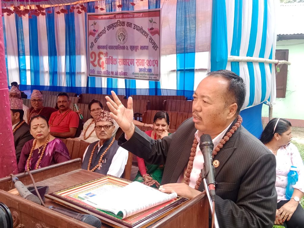 कनकाई खबर \ कनकाई सामुदायिक वनको कार्यालय परिसरमा एउटा फुलबारी समेत नभएकाले वन क्षेत्र दिनप्रतिदिन उजाड देखिँदै गएको भन्दै प्रतिनिधि सभा सदस्य एलपी साँवा लिम्बूले यसको पहिचान जोगाउँन अनुरोध गरे ।