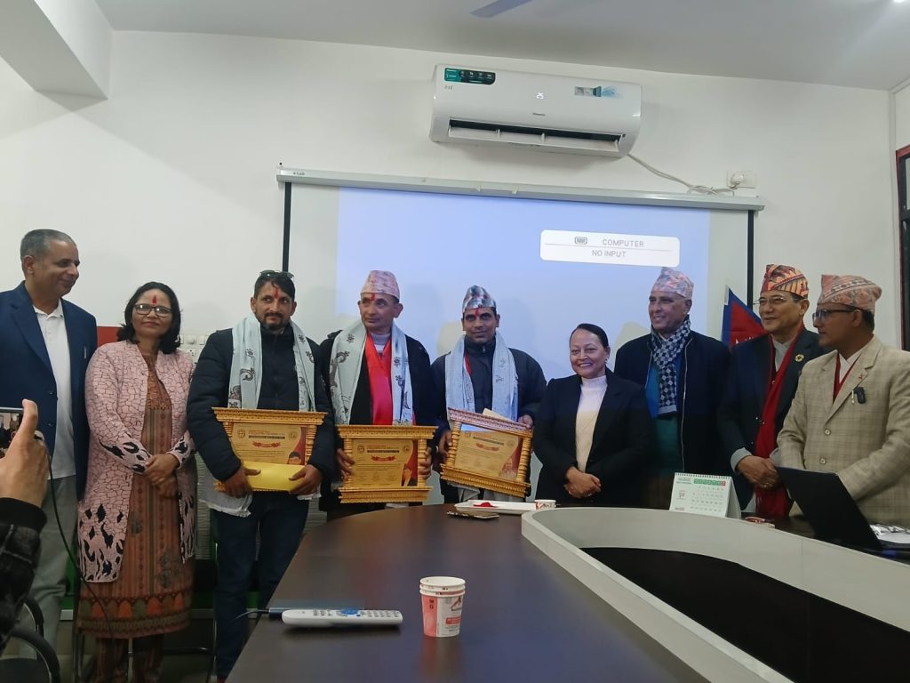 आज जनवरी १ तारिकका दिन बिर्तामोडमा आयोजित विशेष कार्यक्रममा तीनजना पत्रकारहरुलाई कोशी प्रदेशका खानेपानी, सिचाई तथा उर्जा मन्त्री एकराज कार्की, बिर्तामोड नगरपालिकाका प्रमुख पवित्रा महतारा प्रसाई र कम्पनीका उपााध्यक्ष खड्गप्रसाद दाहालले ११ हजार १११ रुपैयाँको चेकसहित दोसल्ला ओढाएर कदरपत्र प्रदान गरी सम्मान गरेका हुन् ।