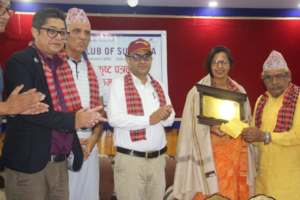 कनकाई खबर \ रोटरी वर्ष उत्कृष्ट पत्रकारिता पुरस्कारबाट नारी सञ्चार गृहकी अध्यक्ष रेजिना गौतम सम्मानित भएकी छन् । हेमकला—टीकाराम निरौला रोटरी वर्ष उत्कृष्ट पत्रकारिता पुरस्कार–२०८२ बाट विगत २१ वर्षदेखि पत्रकारिता क्षेत्रमा कलम चलाएकी गौतम पुरस्कृत भएकी हुन् ।