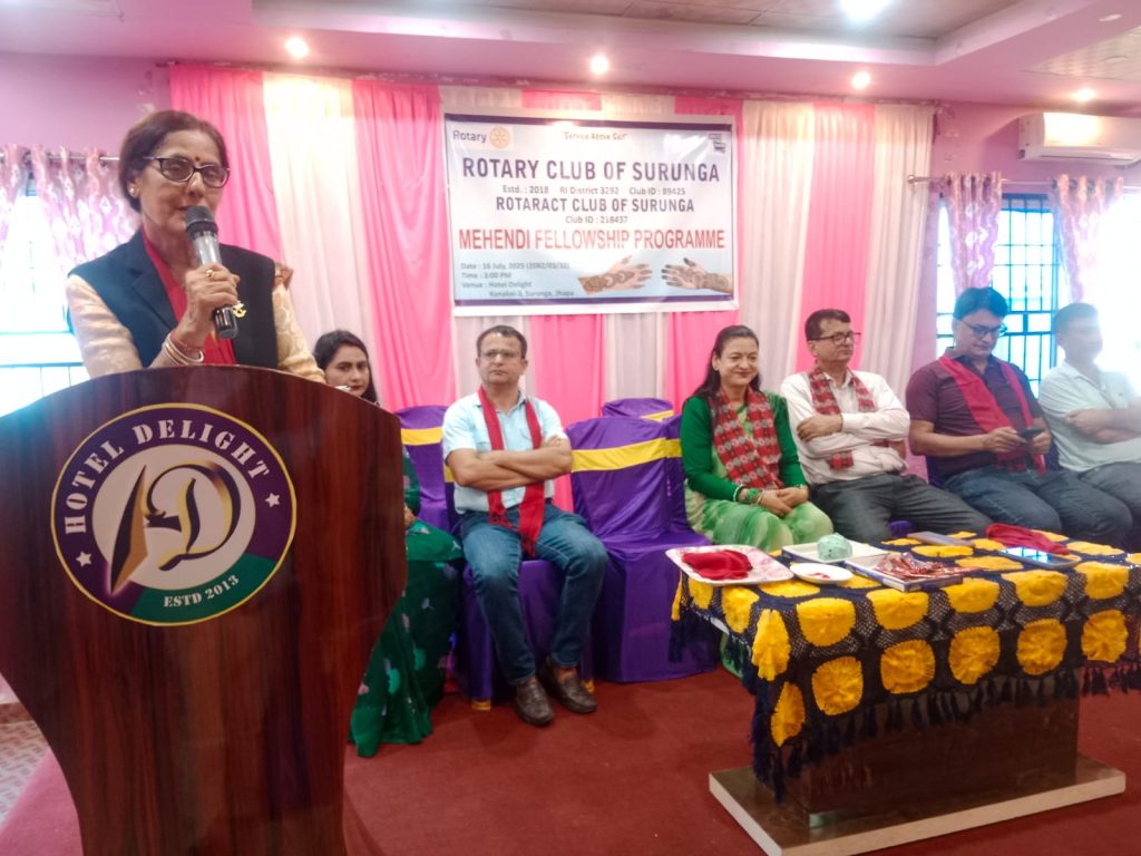 सांस्कृतिक एवं सामाजिक सद्भावको सन्देश दिन सक्ने यस किसिमको कार्यक्रममा स्थानीय महिला रोटरीयनहरूको उल्लेखनीय सहभागिता रहेको बताइएको छ । महिला रोटरीयनहरुले आयोजना गरेको मेहेन्दी फेलोसिप कार्यक्रम रोटरी क्लव अफ सुरुङ्गाकी कोषाध्यक्ष रेणुका मैनालीको अध्यक्षता एवं कनकाई नगरपालिकाकी उपप्रमुख आशा शिवाकोटीको प्रमुख आतिथ्यमा सम्पन्न भएको हो ।