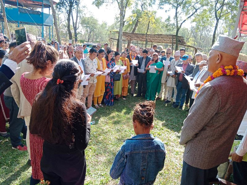 वन समूह परिसरमा नव निर्वाचित अध्यक्ष ख्याम ओली , उपाध्यक्ष ललित बहादुर कार्की , सचिव मान्ता खरेल , सहसचिव केशव सङ्ग्रौला, कोषाध्यक्ष श्रीप्रसाद खरेल साथै १७ वटै टोलका टोल संयोजक र सदस्यहरुलाई निर्वाचन समितिका सदस्य रुपनारायण खतिवडाले सपथ ग्रहण गराए । साथै निर्वाचन समितिका संयोजक टीकाकुमार पोखरेलले नव निर्वाचित अध्यक्ष ख्याम ओलीलाई माइन्युट प्रदान गर्दै पद हस्तान्तरण गराएका थिए । वन समूहको १७ वटै टोलका संयोजकहरु कार्यसमिति सदस्यमा रहने साथै पाँचजना मनोनीत सहित २७ सदस्यीय कार्यसमिति रहने व्यवस्था भएको वन समूहका कार्यालय सचिव नेत्र भट्टराईले जानकारी दिए ।