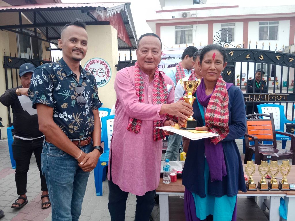 यता महिला तर्फ दोस्रो निर्मलादेवी दनुवार, तेस्रो मनिता राई र शान्त्वना क्रमशः लक्ष्मी राई, गंगा विष्ट, जमुना कटुवाल र प्रियंका गौतमले समेत नगदसहित प्रमाण पत्र र ट्रफी प्राप्त गरे । प्रतियोगितामा दोस्रो हुनेले नगद ३ हजार र तेस्रो हुनेले १ हजार नगद र शान्त्वना हुनेले जनही ५ सय नगद, ट्रफी र प्रमाण पत्र प्राप्त गरे ।
