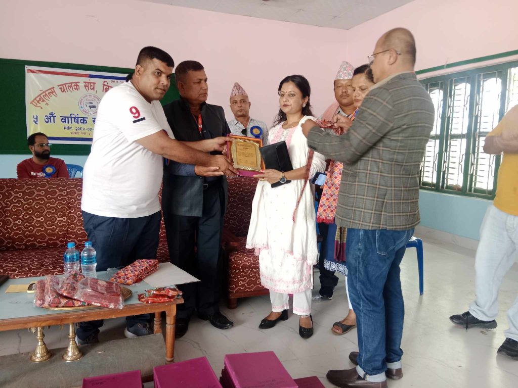 यसरी सम्मानित हुनेहरुमा कोशी प्रदेशकै एक सफल महिला एम्बुलेन्स चालक दमक निवासी लिला वस्ताकोटी साथै चालक स्व.महेन्द्र गौतमलाई मरणोप्रान्त उनकी श्रीमति गीता गौतमलाई सम्मान गरिएको छ । त्यस्तै कोरोना कालमा संक्रमित भएका एम्बुलेन्स चालक अर्जुनधारा निवासी बले दनुवारलाई संस्थाको नियम अनुसार कोरोना विमा अन्तर्गतको नगद १ लाखको चेक हस्तान्तरण गरिएको छ । त्यस्तै कोरोना कालमा एम्बुलेन्स चालकहरुलाई महत्वपुर्ण सहयोग गरेको भन्दै राष्ट्रिय आविष्कार केन्द्रलाई समेत सम्मान गरेको संघका जिल्ला अध्यक्ष राजेश श्रेष्ठले जानकारी दिए । अध्यक्ष श्रेष्ठले संस्थाका तर्फबाट प्रगति विवरणसहितको प्रतिवेदन प्रस्तुत गरेका थिए । उपाध्यक्ष पारसमणि राईले स्वागत गरेको साधारण सभाको पहिलो सत्रको संचालन संचारकर्मी भुमिका लिम्बू फियाकले गरेकी थिइन् ।