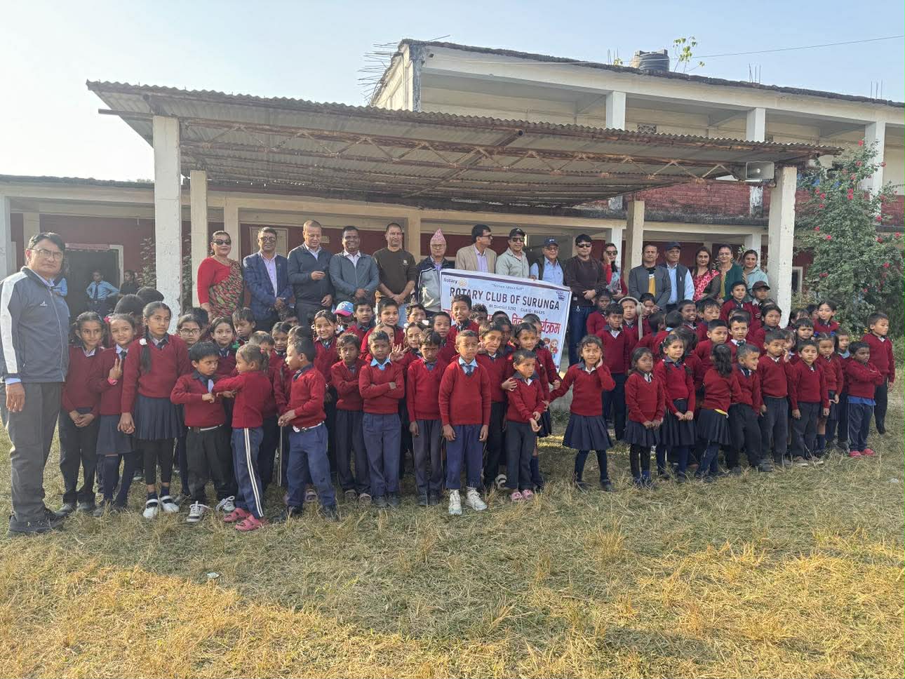 बालबालिकालाई न्यानो कपडा (स्विटर)वितरण गर्दै रोटरी क्लव सुरुङ्गा